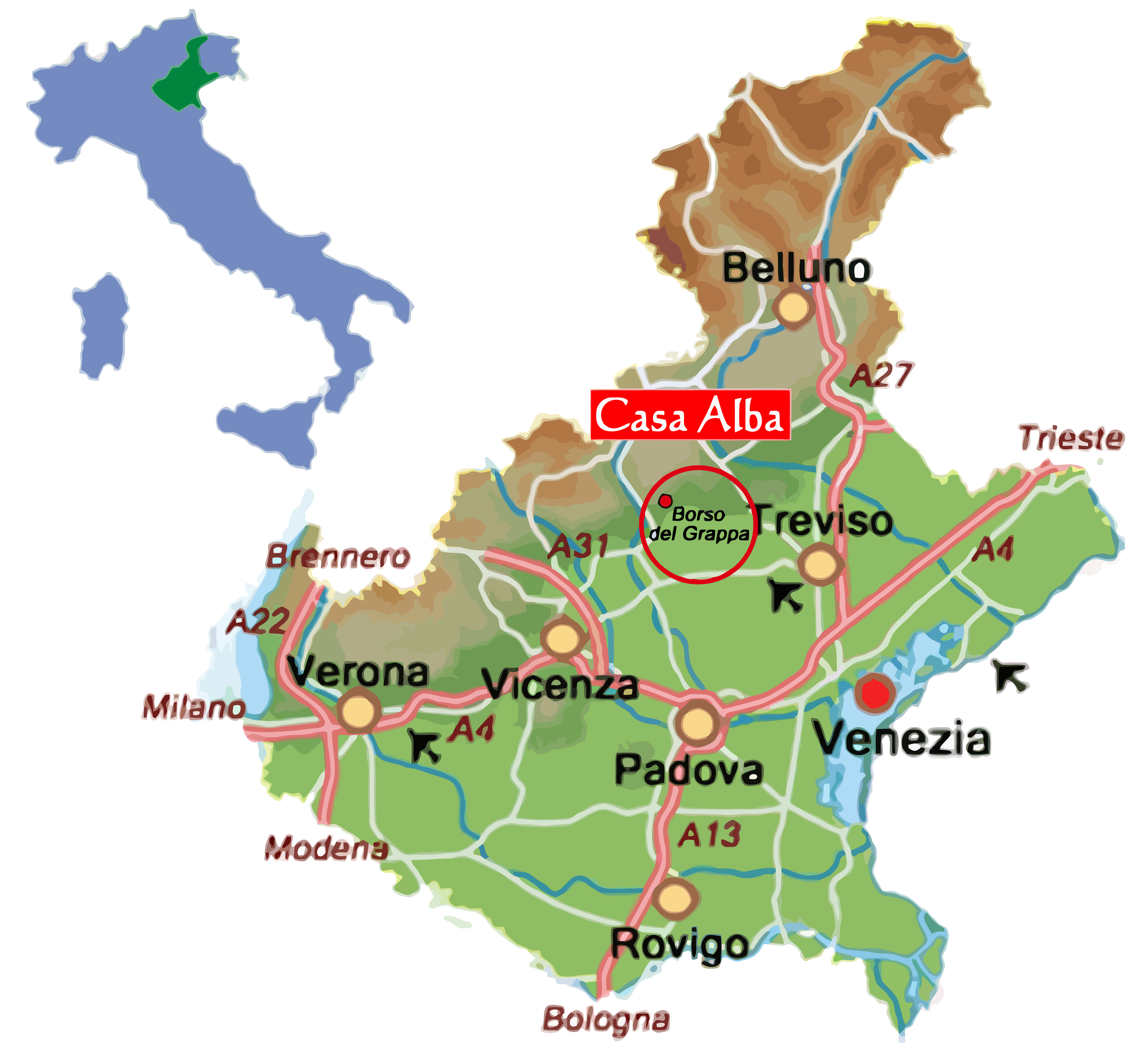 Casa Alba is located on the border between the provinces of Treviso and Vicenza, in the center of Borso del Grappa.